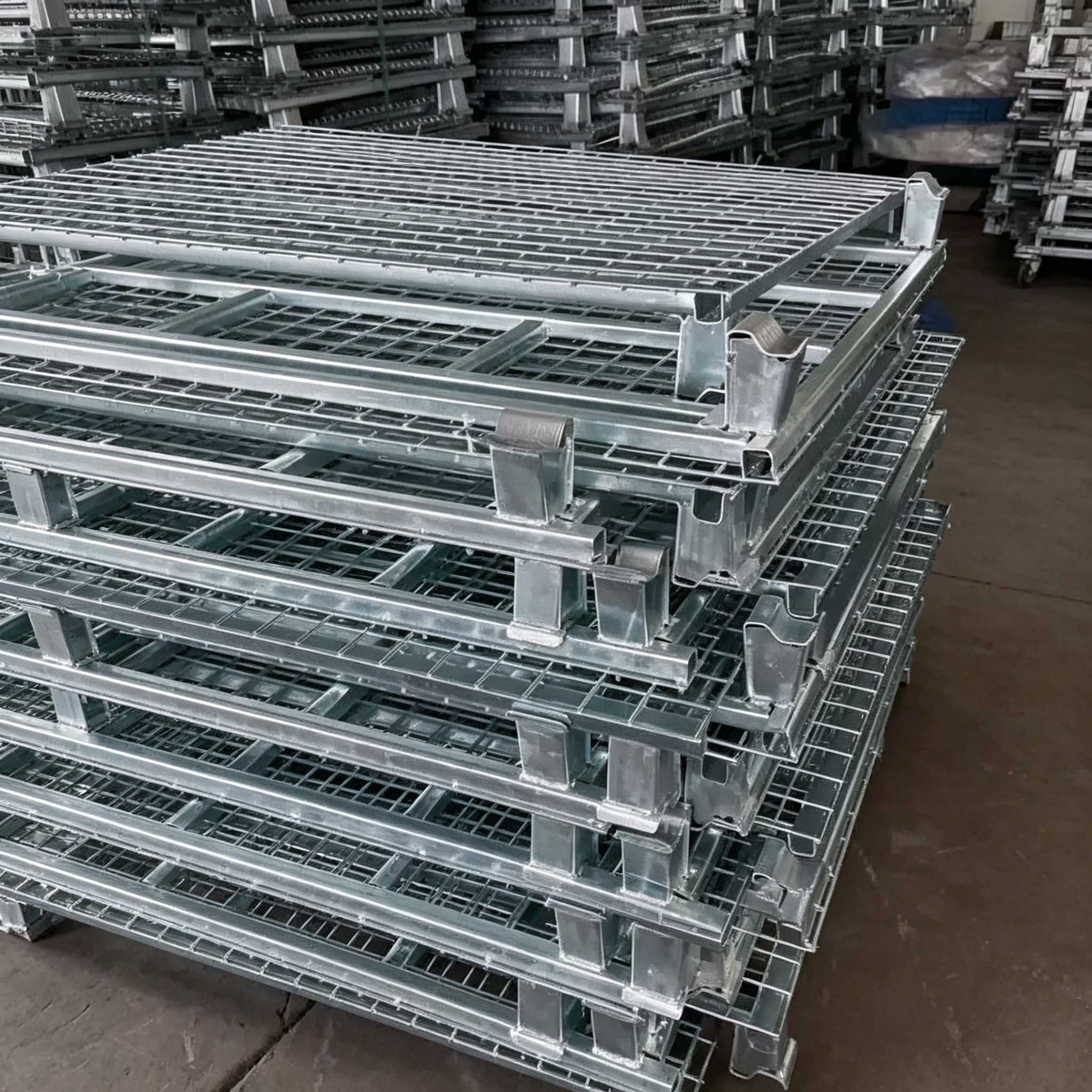 • Eficiencia Espacial: Admite el apilamiento estable de 4-5 capas cuando está completamente cargado; el diseño de almacenamiento tridimensional aumenta la capacidad efectiva del almacén en más del 30%. El diseño plegable reduce el volumen inactivo hasta en un 70%, maximizando el ahorro de espacio de almacenamiento cuando las jaulas no están en uso.